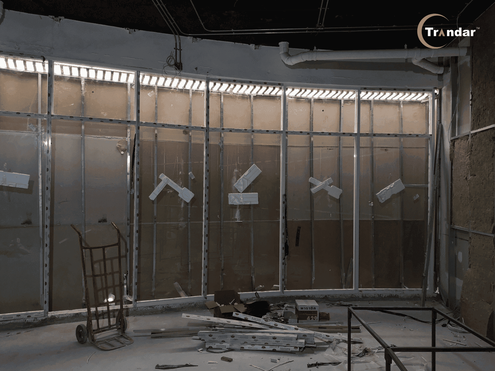 แทนที่จะใช้ผนังกั้นทั่วไป โครงการนี้เลือกใช้ Trandar Hitech Wall