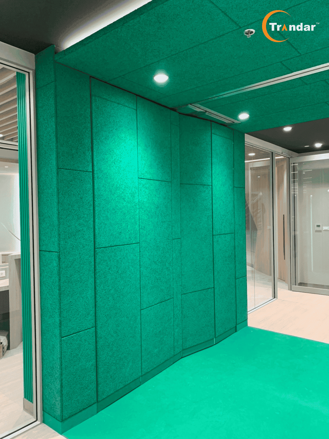 ถูกนำมาใช้เป็นระบบผนังกั้นภายใน เพื่อลดเสียงทะลุระหว่างห้องประชุมเเละพื้นที่ทำงาน
