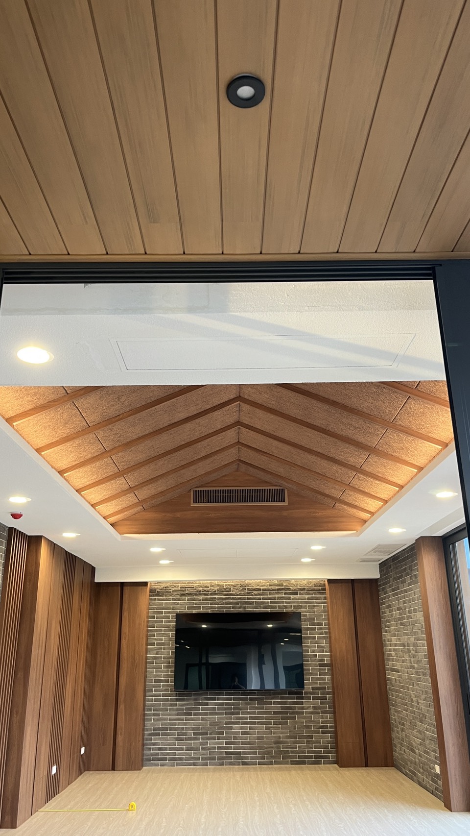 พ่นสีน้ำตาลธรรมชาติ พร้อมการเซาะร่องตามลายที่ออกแบบเฉพาะสำหรับโปรเจกต์นี้