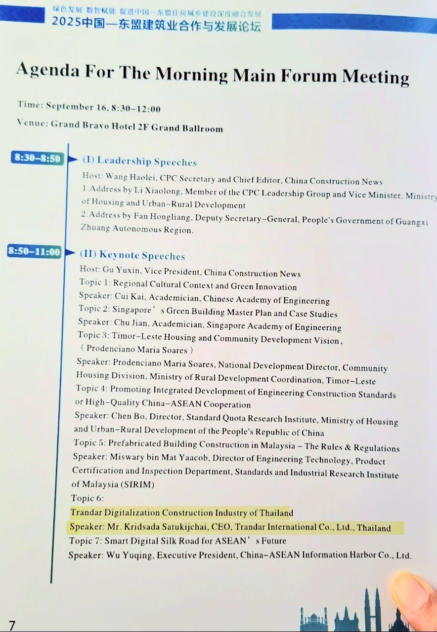 Trandar Group은 ASEAN–China Cooperation and Development Forum on Building Industry 2025에서 태국 건설 산업을 함께 이끌다 2025년 9월 15일 중국 광시성 계림(Guilin)에서
